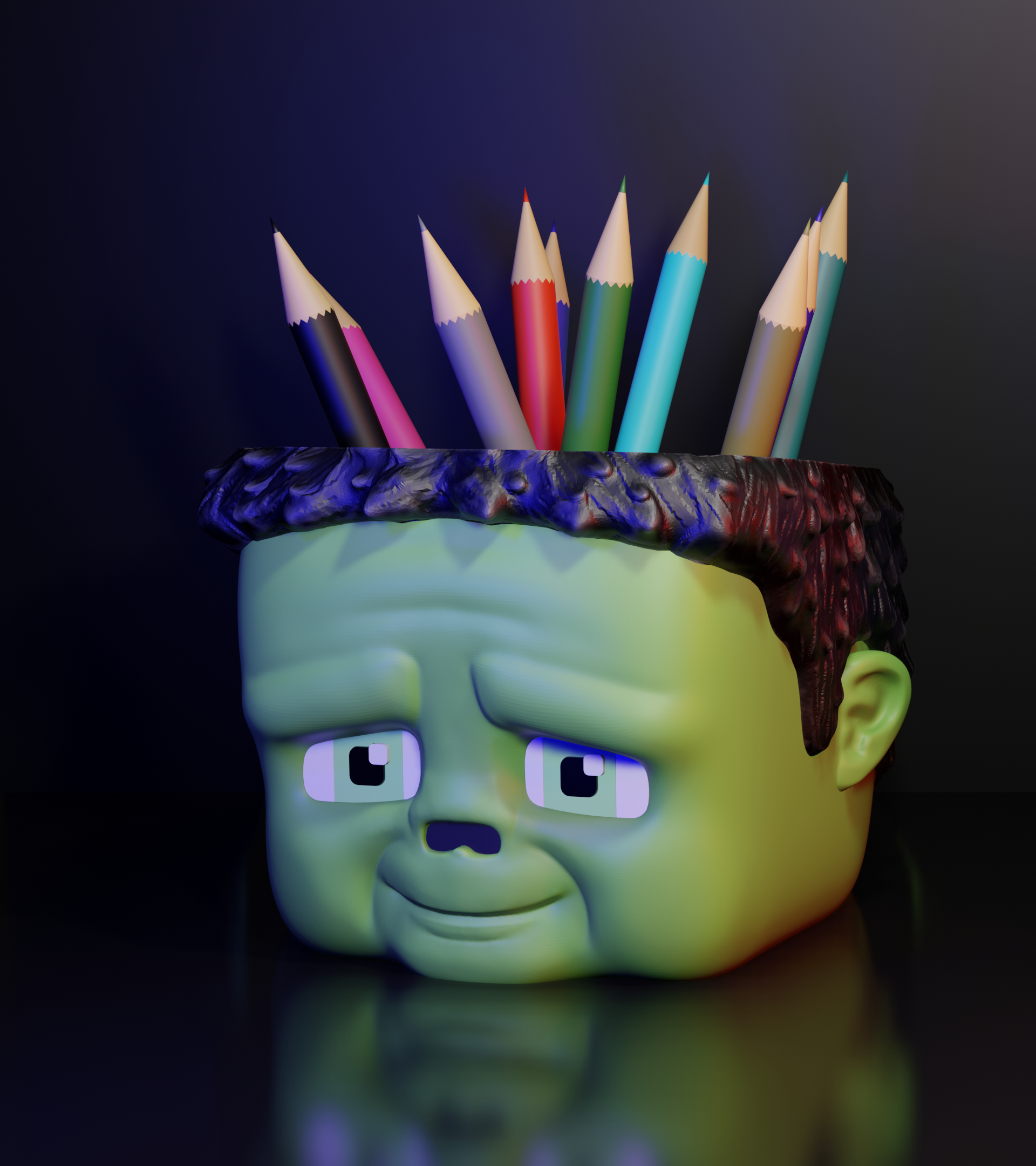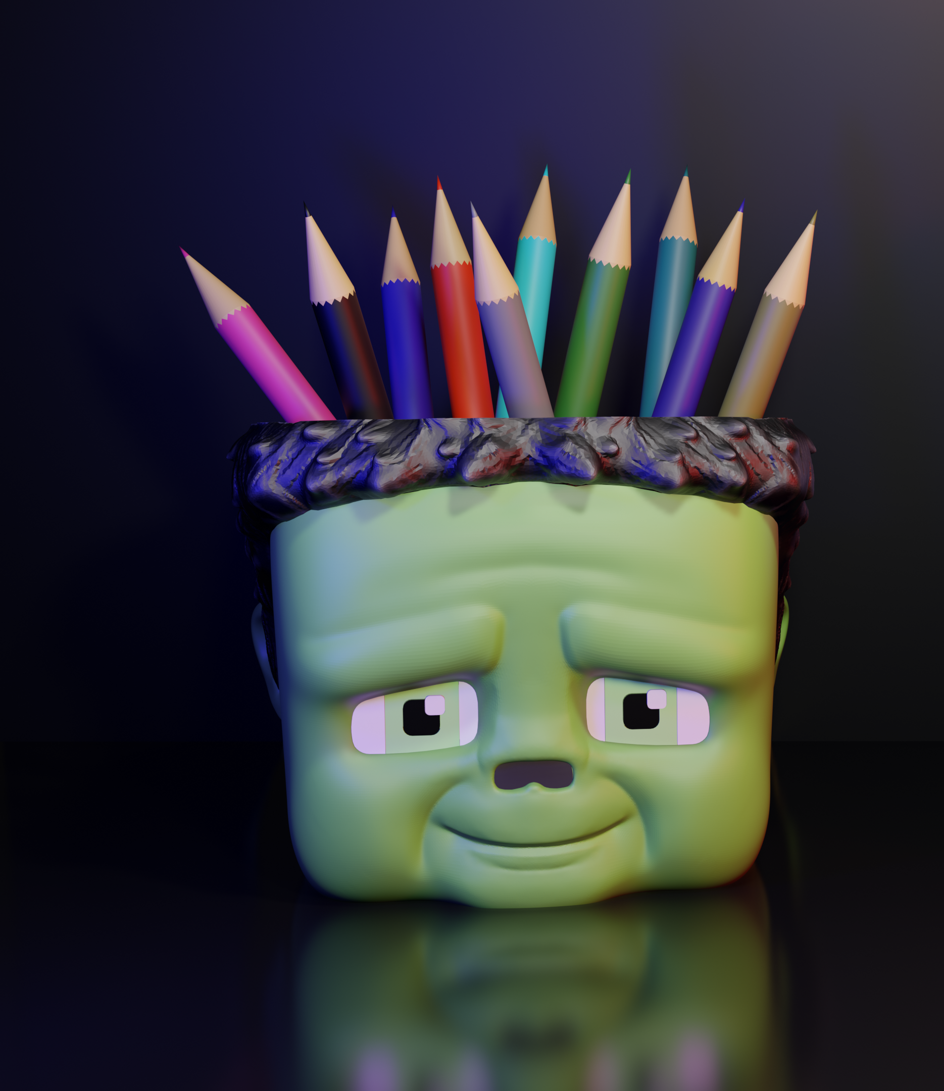 1x Pen holder in Minecraft zombie style – organization in block style