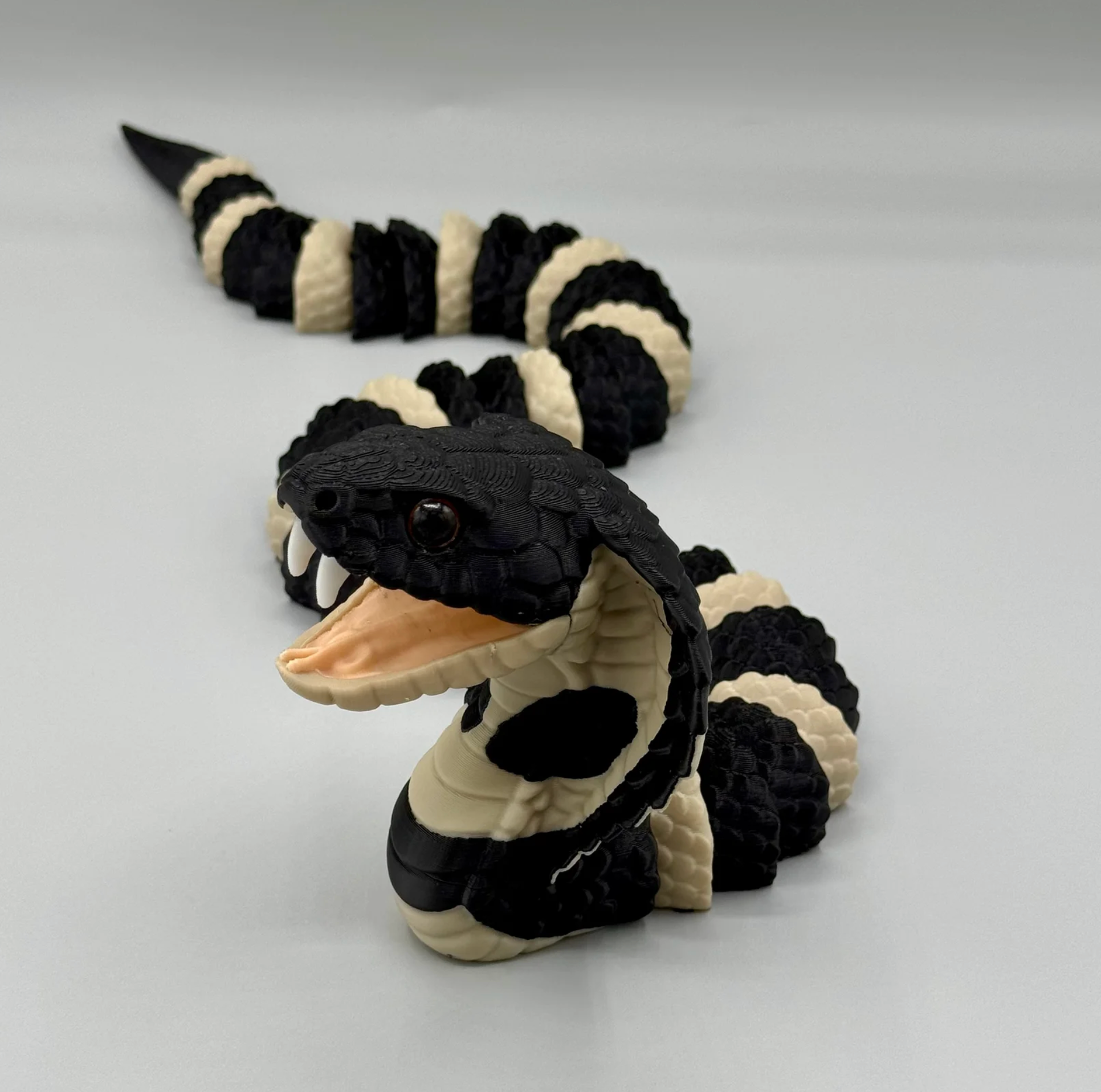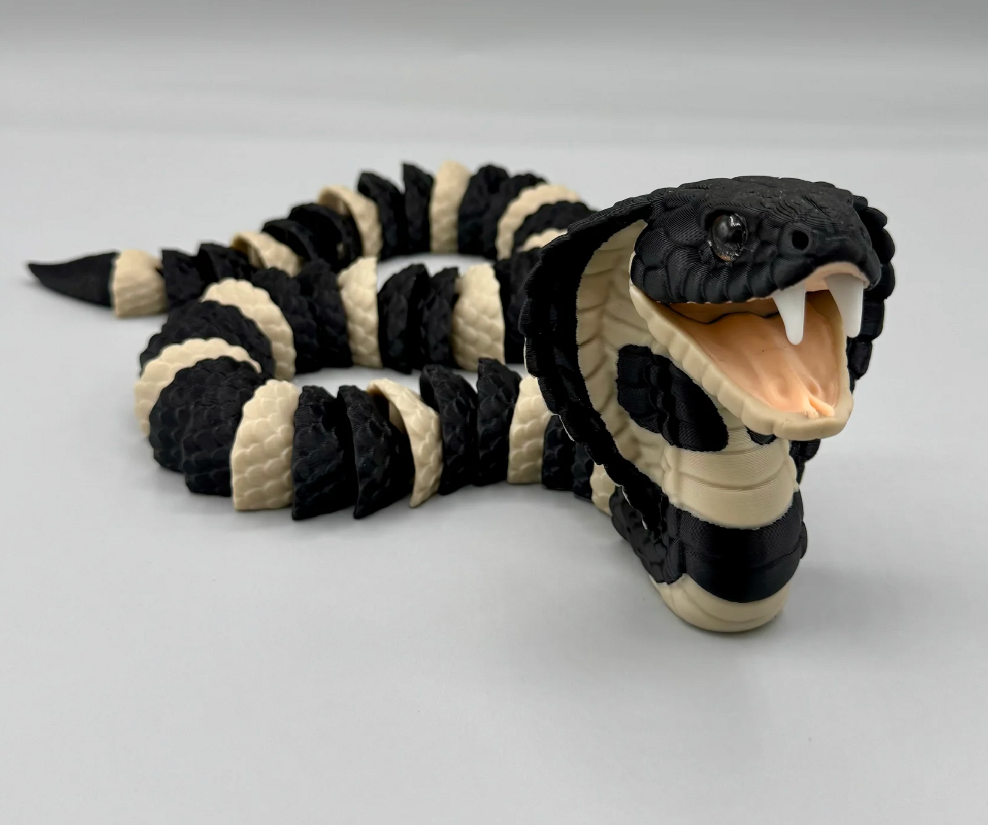 Produktbeschreibung:Diese beeindruckende Königskobra-Figur definiert Realismus neu. Gefertigt im hochmodernen 3D-Druckverfahrenbesteht sie aus unzähligen einzelnen Gliederndie ihr eine außergewöhnliche und lebensechte Beweglichkeit verleihen. Du kannst sie windenrollen und in jede erdenkliche Schlangenpose bringen.Das Design besticht durch eine detaillierte Schuppentextur und die klassische schwarz-weiße Färbung einer Königskobra. Der Kopf ist besonders furchteinflößend gestaltetmit einem weit geöffneten Mauldas die Giftzähne enthüllt. Ein faszinierendes Spiel aus Gefahr und Eleganz.Produktdetails: