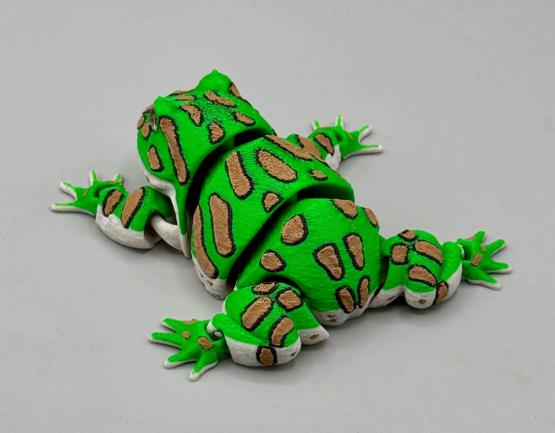 Produktbeschreibung:Diese entzückende Figur eines Pacman-Frosches (auch bekannt als Schmuckhornfrosch) fängt das einzigartige Aussehen dieser Amphibien perfekt ein. Hergestellt im mehrfarbigen 3D-Druckverfahrenbesticht die Figur durch ihre leuchtenden Farben und die charakteristischen Flecken. Das Markenzeichendas überproportional große Mauldas ihm seinen Spitznamen "Pacman" eingebracht hatist detailgetreu nachempfunden.Dank der beweglichen Beine kann der Frosch in verschiedene sitzende oder lauernde Positionen gebracht werden. Er ist das perfekte Deko-Element für Fans von exotischen Tieren oder eine lustige Ergänzung für den Schreibtisch.Produktdetails: