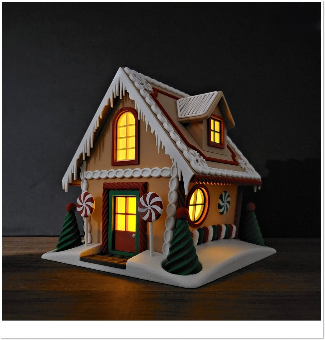 Knusperknusperknäuschen... wer knuspert an diesem Häuschen? Unser exklusives3D-gedrucktes Lebkuchenhaus ist eine zuckersüße Fantasiedie wahr wird – und das ganz ohne Krümel! 🌟 Dieses prachtvolle Dekostück ist der perfekte Mittelpunkt für deine Weihnachtsdekoration und verbirgt ein süßes Geheimnis.