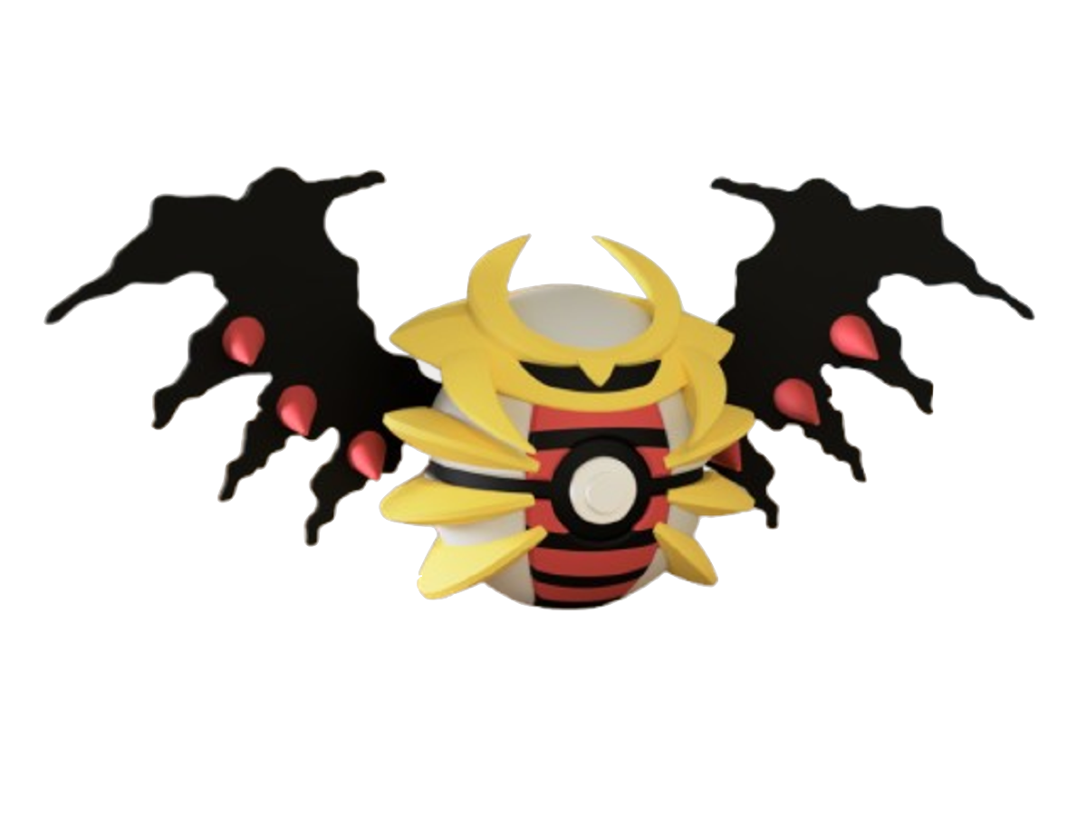 Tiefes Grauglänzendes Schwarz und bedrohliches Rotkombiniert mit goldenen Elementen – eine direkte Hommage an Giratinas alternative Form und seine Verbindung zur Schattenwelt.