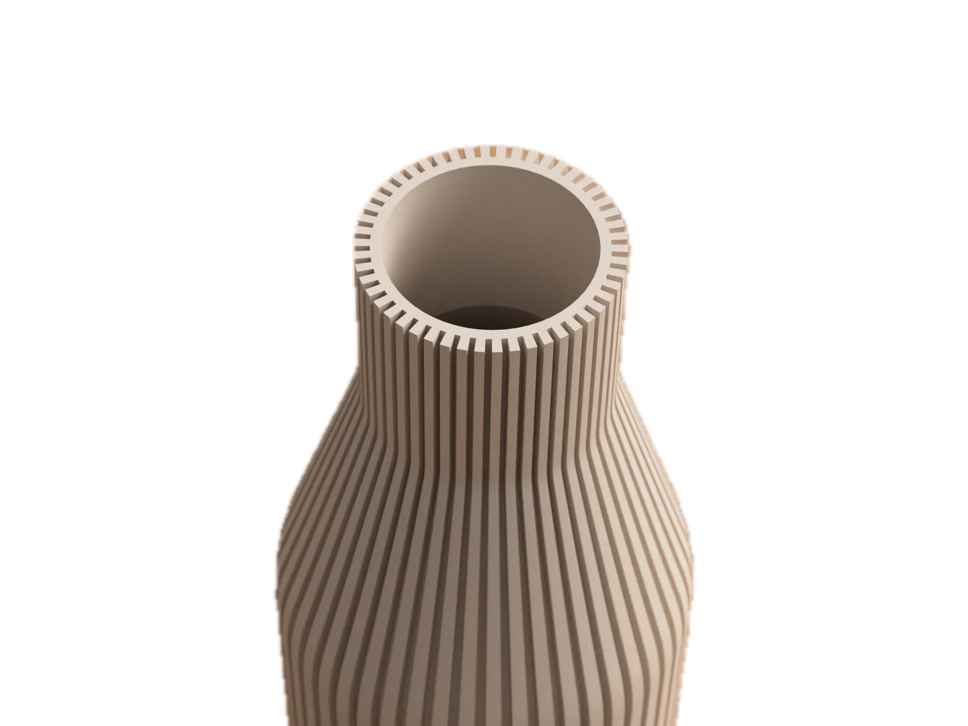 Die organischeflaschenähnliche Silhouette sorgt für eine elegante Präsenz im Raumwährend die vertikalen Rillen eine moderne Interpretation zeitgenössischen Designs darstellen – ein Designelementdas perfekt zu verschiedensten Einrichtungsstilen passt.