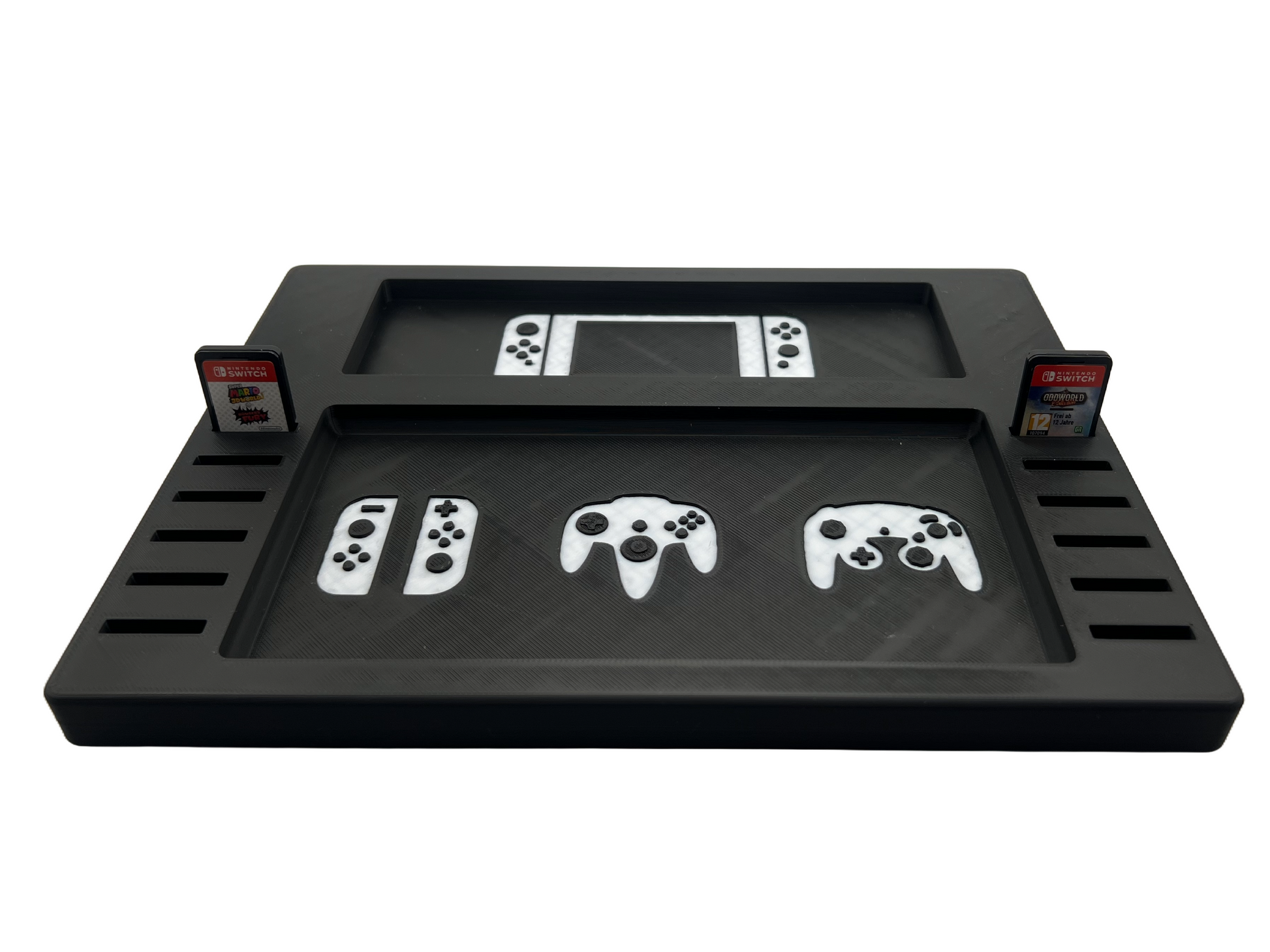 1x Nintendo Switch Dock & Controller-Halter mit 12 Spiel-Steckplätzen – Praktische 3D-Druck Station für Ordnung & Zubehör im Gaming Setup