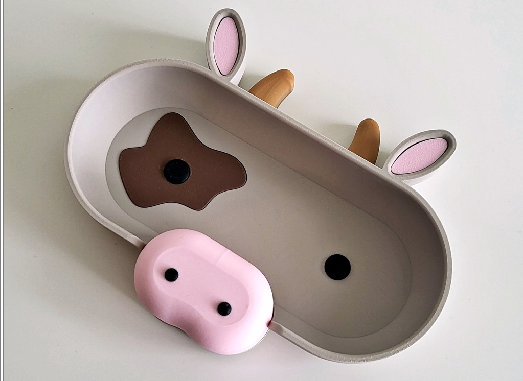 Mit unserem liebevoll gestalteten Brillenhalter in Kuhform zieht ein Stück Landluft bei dir ein! Die freundliche Kuh hält deine Brille sicher auf ihrer Nase und sorgt für ländliches Flair auf dem Schreibtisch oder Nachttisch.Der Brillenhalter ist nicht nur funktionalsondern auch ein witziges Dekoelement – besonders beliebt bei KindernTierfreunden oder Fans von Bauernhof-Motiven. Ob im SchlafzimmerBüro oder Kinderzimmer – die Kuh bringt Charakter und ein Lächeln mit.Dank des hochwertigen 3D-Drucks aus PLA ist sie robustlanglebig und leicht – und dabei nachhaltig produziert. Eine süße Geschenkidee mit praktischem Nutzen.