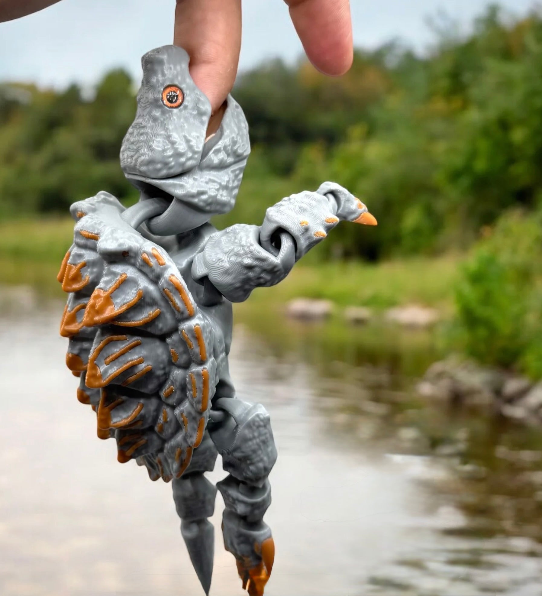 Produktbeschreibung:Hol dir ein Stück Urzeit nach Hause mit dieser beeindruckenden Figur einer Geierschildkröte. Hergestellt im hochauflösenden 3D-Druckverfahrenfängt dieses Modell die rauefast prähistorische Anmutung dieser gewaltigen Schildkrötenart perfekt ein. Der massive Panzer mit seinen drei markanten Kielen und die grobe Textur der Haut sind unglaublich detailliert nachgebildet. Der gesamte Körperinklusive KopfBeine und Schwanzist aus flexiblen Gliedern aufgebautwas der Figur eine erstaunliche Beweglichkeit verleiht.Ein besonderes Merkmalwie bei all unseren Reptilien-Modellensind die eingesetztenrealistischen Glasaugen. Sie verleihen der Figur einen unglaublich lebensechten und wilden Blickder ihre Kraft und Entschlossenheit unterstreicht.Produktdetails: