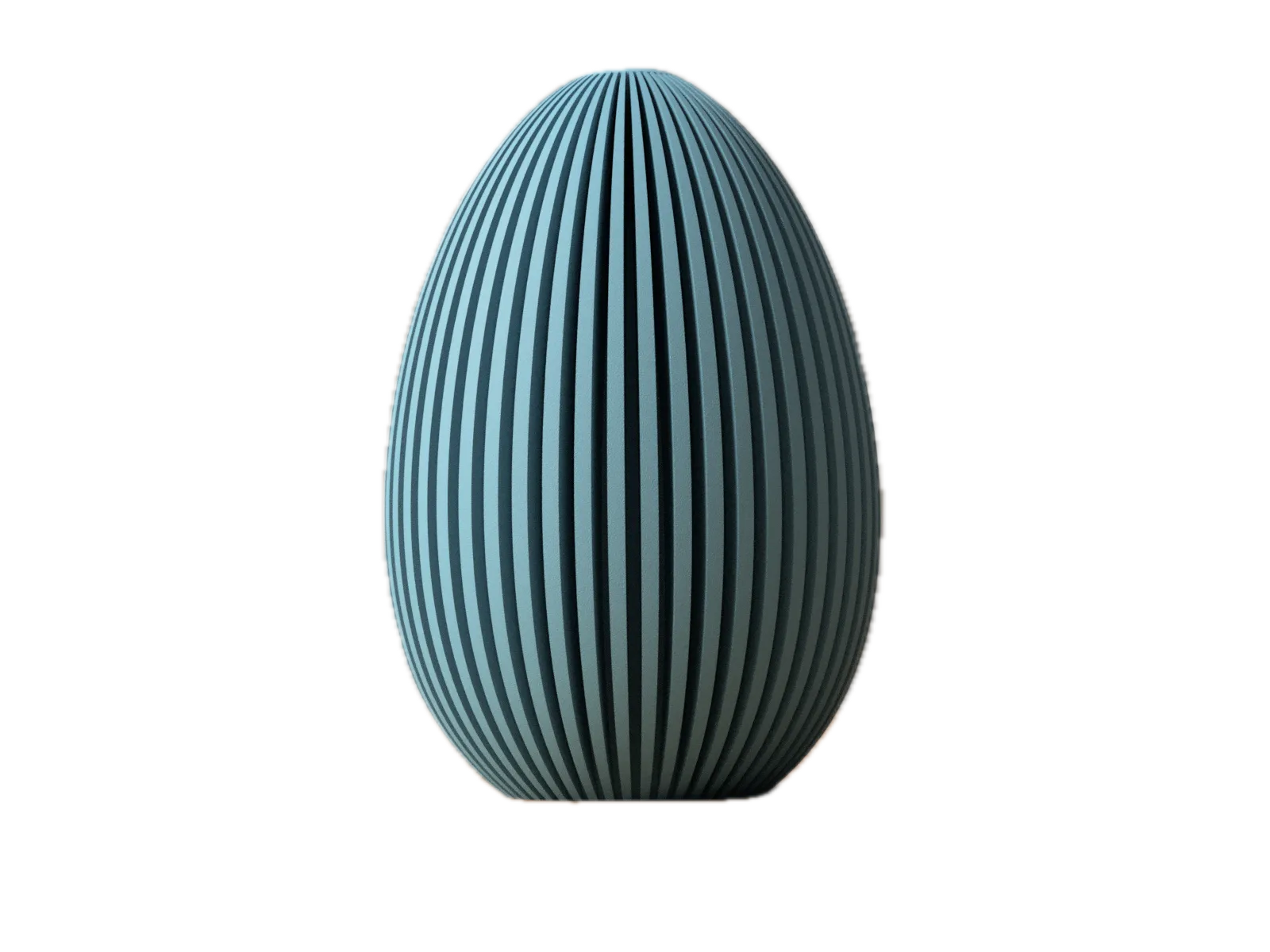 Die gerippten Eier verkörpern perfekt die Verbindung von natürlicher Form und moderner Gestaltung. Die klarereduzierte Formgebung wird durch die feinen vertikalen Rillen bereichertdie dem Objekt Tiefe und Charakter verleihen. Die sanften Farbtöne und die organische Form schaffen eine ruhigeharmonische Präsenz in jedem Raum.