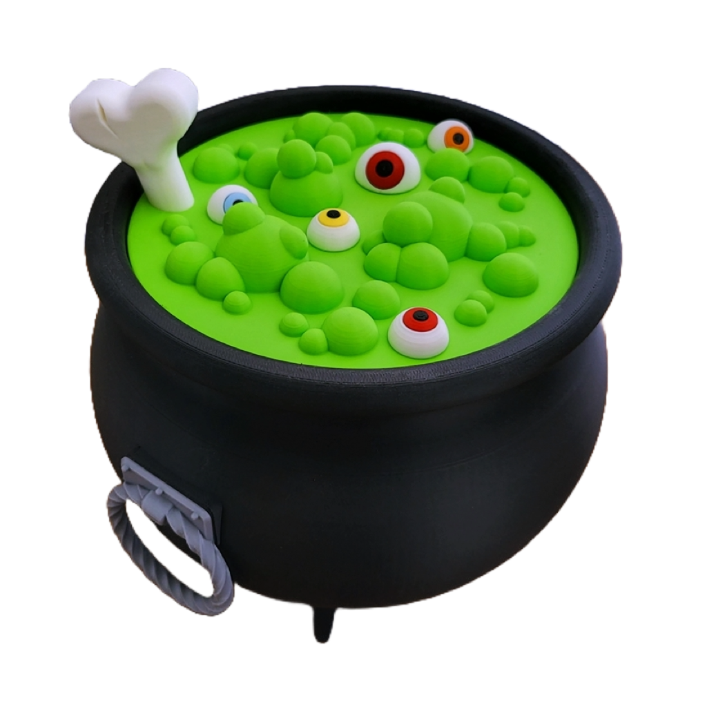 - Kreatives Design: Der Kessel ist im Stil eines traditionellen Hexenkessels gestaltet. Das absolute Highlight ist der abnehmbare Deckel: Er sieht aus wie ein blubberndergiftgrüner Zaubertrankin dem gruselige Augäpfel und ein Knochen schwimmen. Ein Designdas garantiert für Gesprächsstoff sorgt! 💚